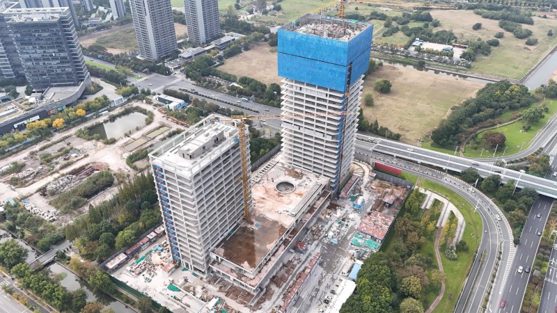 项目配备塔吊可视化无死角摄像头、基坑检测装置、高支模监测装置等智能化设备,构建起智能化、机械化施工体系,让施工过程安全可控。同时,创新应用无人机航拍结合虚拟仿真技术,直观掌握场地布置情况,优化塔吊等设备布局方案,大幅提升现场布置的合理性与安全性。