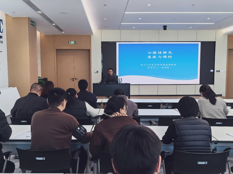 本次活动特邀南京市鼓楼医院急诊科副主任医师范国峰担任主讲。范主任结合多年临床经验,围绕心绞痛、急性心肌梗死、脑中风等常见突发健康事件,系统讲解了急救要点与操作规范,内容深入浅出,贴近生活实际,帮助员工掌握在关键时刻保护家人与自己生命安全的基本技能。